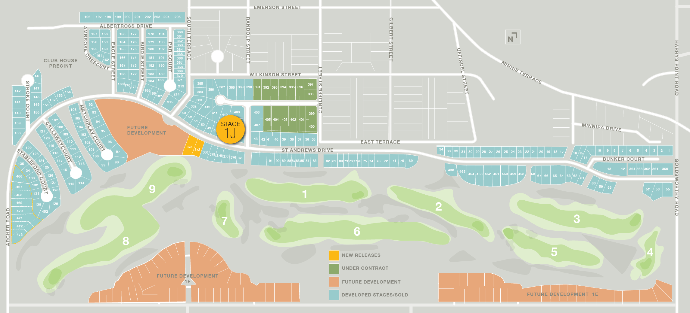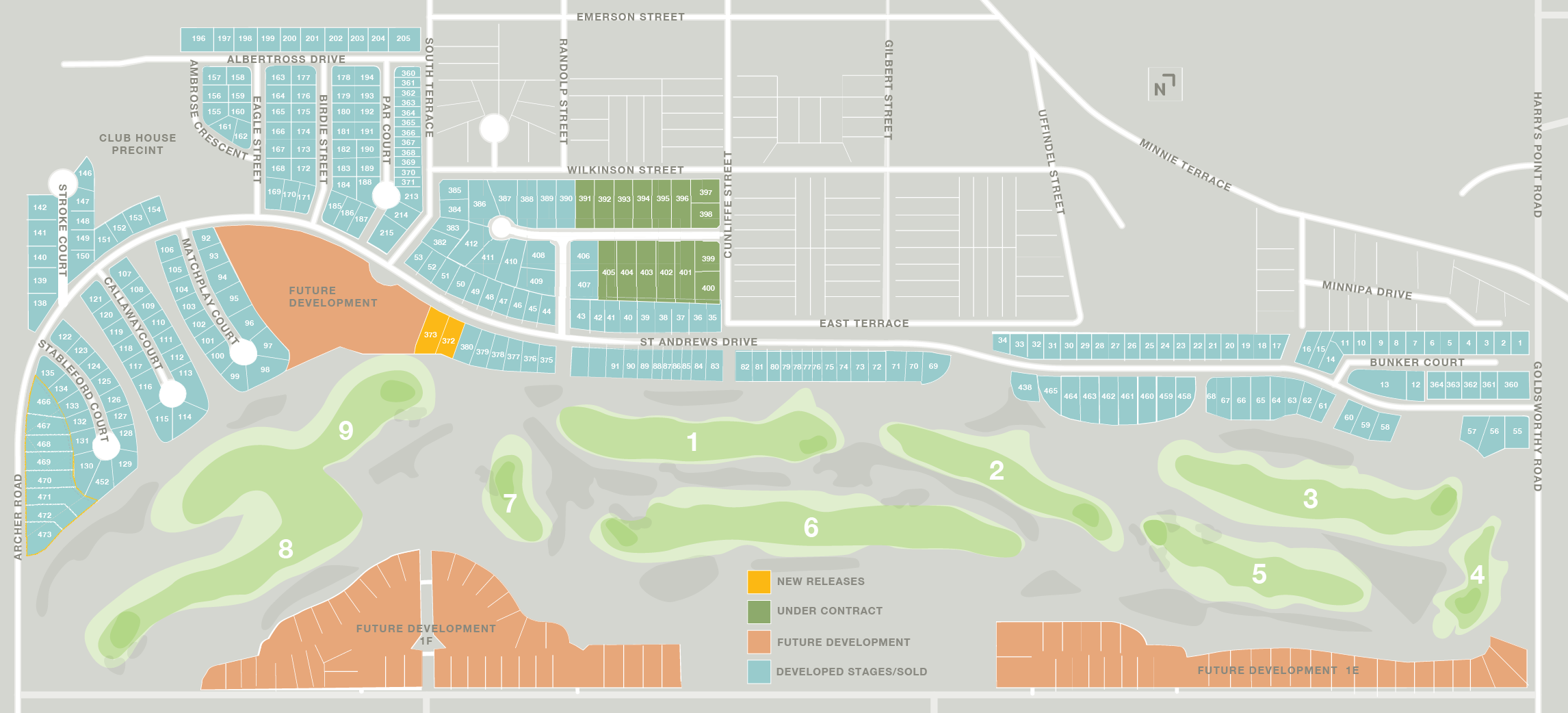 The following masterplan for The Dunes denotes the stages developed, and land currently available for sale, while also outlining the future